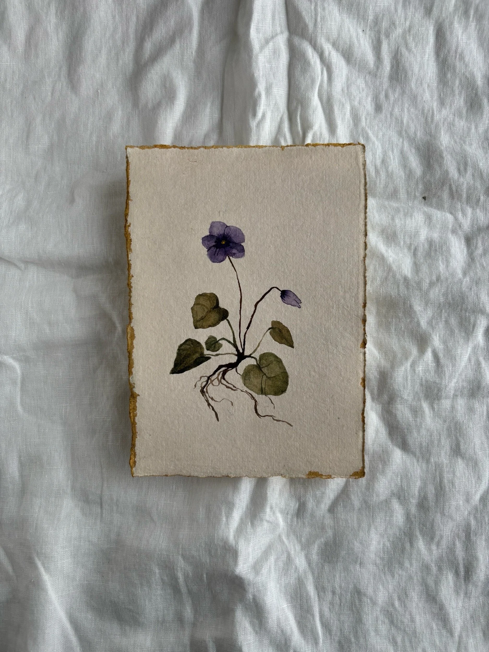 Original watercolor painting on handmade 250gsm 100% cotton rag paper with deckled edges. Edges are treated with stain, leaving a rustic look to the paper.