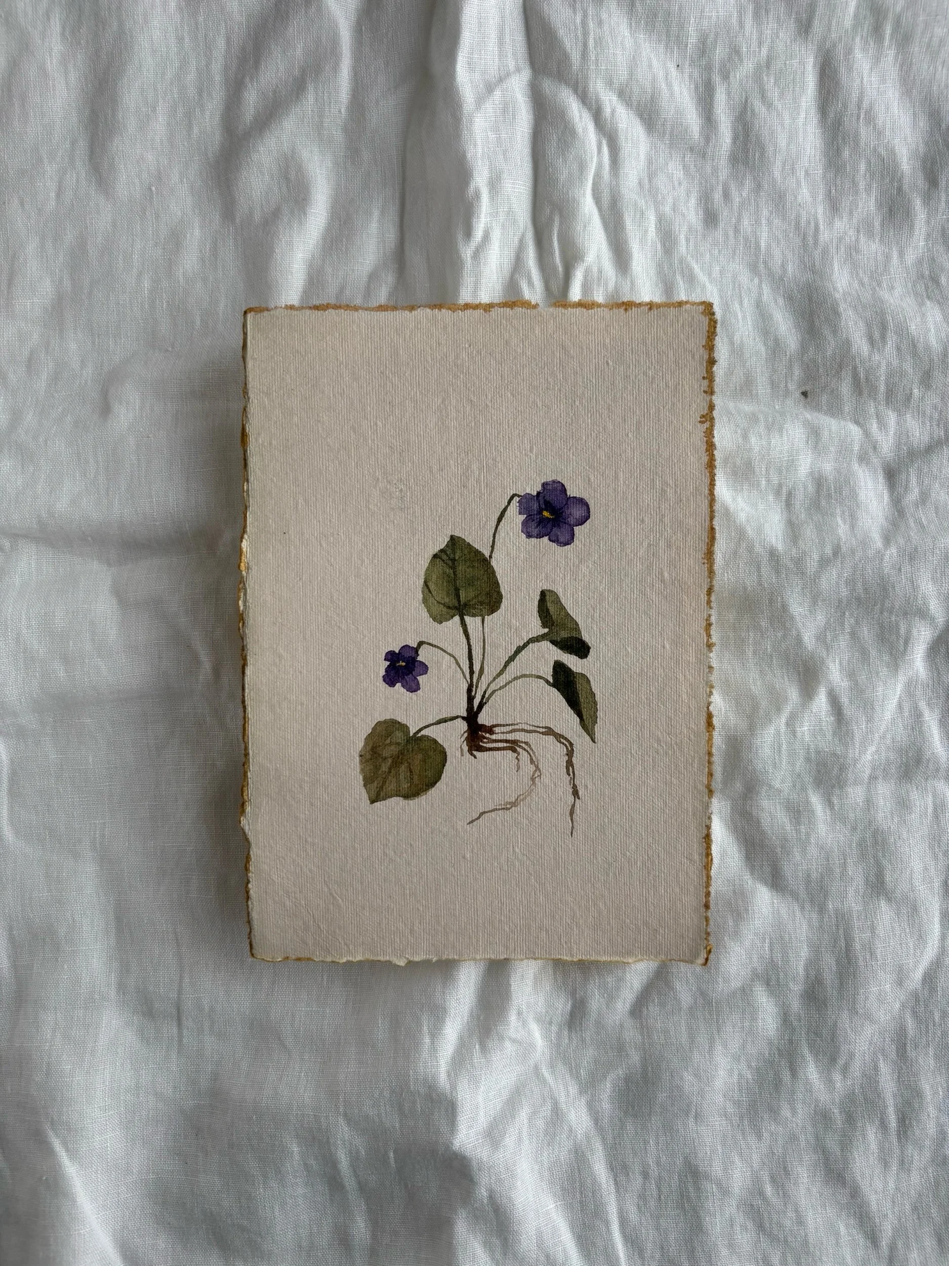 Original watercolor painting on handmade 250gsm 100% cotton rag paper with deckled edges. Edges are treated with stain, leaving a rustic look to the paper.